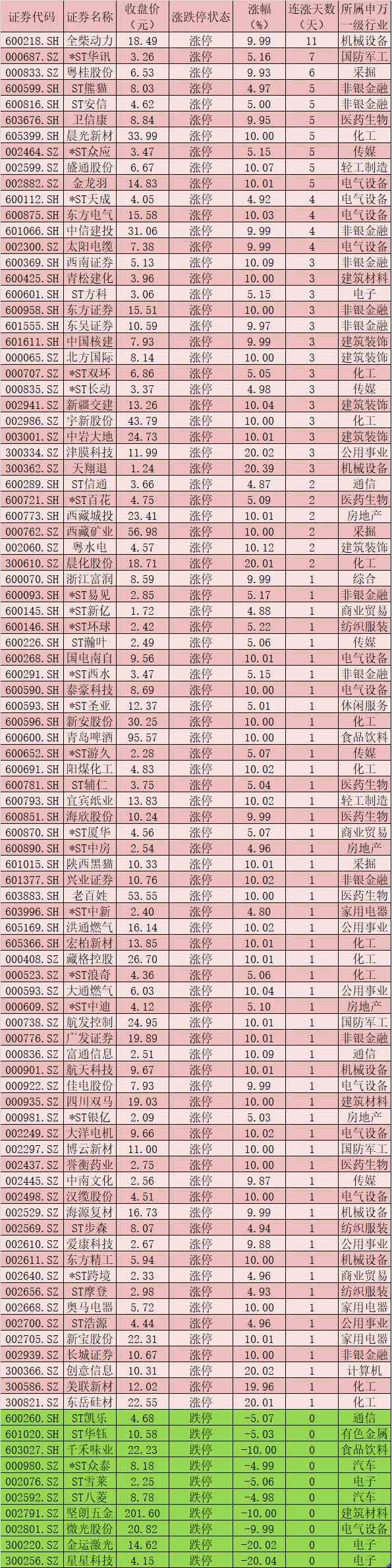 三、周三(8月18日)漲跌停股