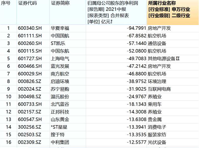 半年報十大“虧損王”出爐!最多虧了近百億 機(jī)構(gòu)已抓緊調(diào)倉