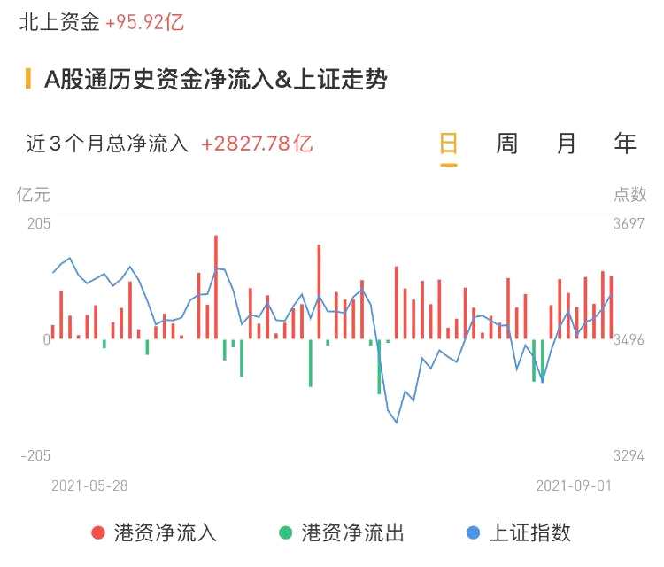 北上資金今日凈流入95.92億元,昨日凈流入103.2億元。