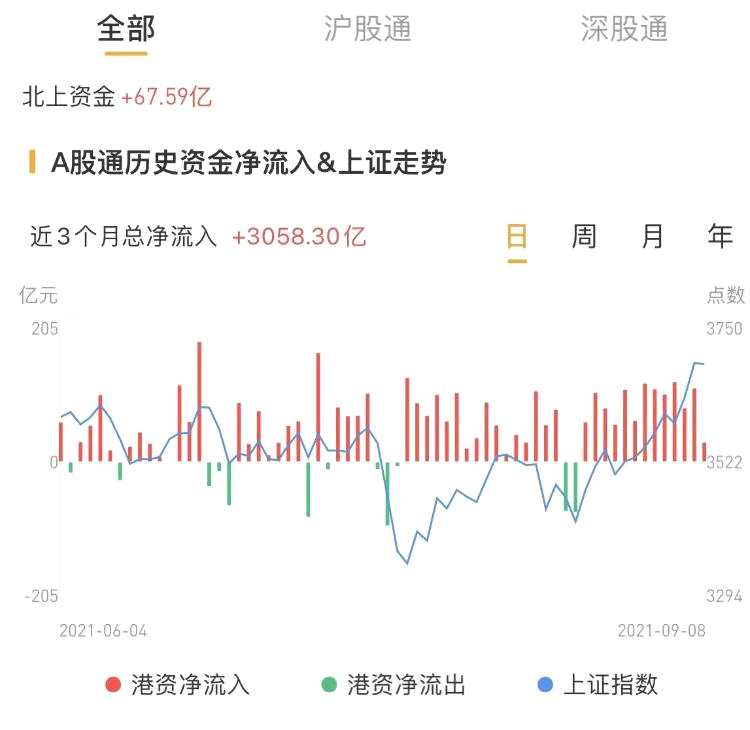 北上資金今日凈流入67.59億元,昨日凈流入26.88億元。