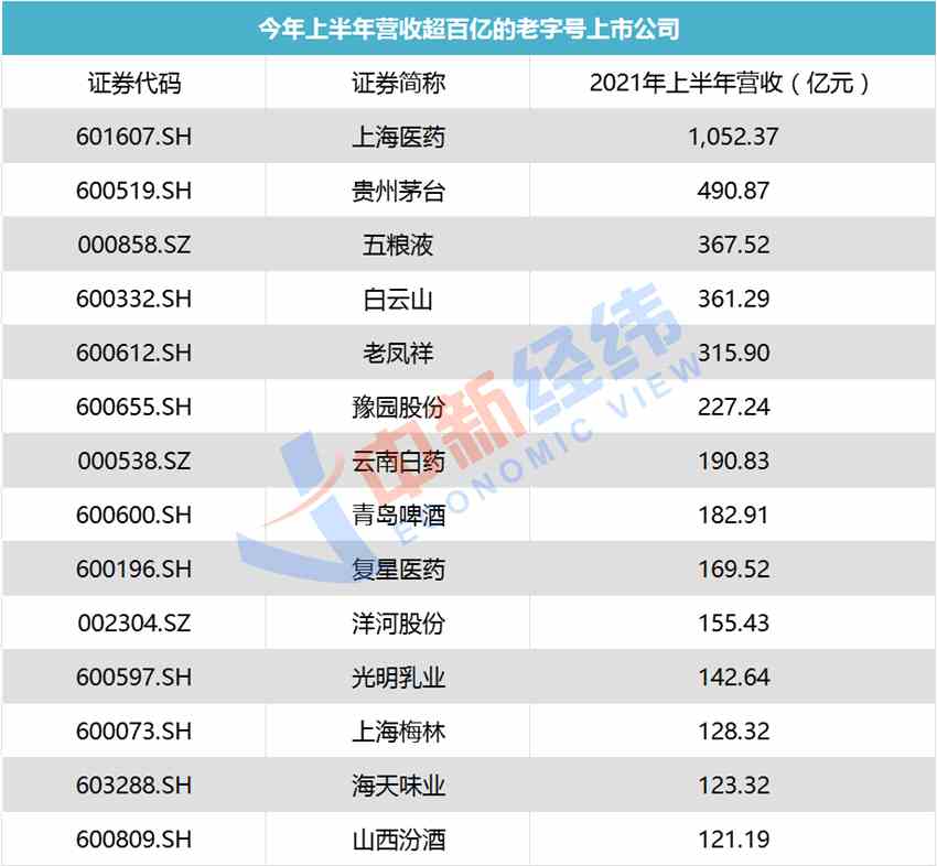 老字號活得都不好?看看這些上市公司 有的半年收入超千億