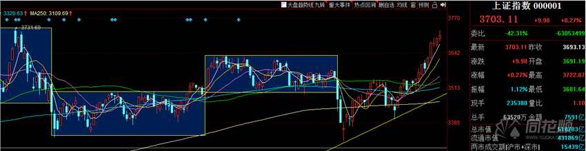 總體來(lái)看,指數(shù)雖站穩(wěn)3700點(diǎn),但個(gè)股普跌,黃白線分化較大,市場(chǎng)輪動(dòng)節(jié)奏依舊很快,賺錢效應(yīng)并不理想;尾盤中字頭股票、證券等權(quán)重的回落預(yù)示著指數(shù)仍有波動(dòng),策略上依舊不能激進(jìn)。