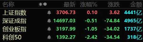 9月13日,A股三大指數(shù)早間開盤漲跌不一,隨后基本處于窄幅震蕩走勢。截至午間收盤,上證指數(shù)張0.10%,報3706.73點,深證成指跌0.51%,報14697.03點,創(chuàng)業(yè)板指跌1.05%,報3197.99點。