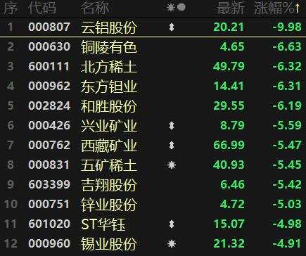 值得一提的是,伴隨著煤炭股跳水,鋼鐵行業(yè)、有色金屬、稀缺資源等周期板塊均一齊下行走弱。