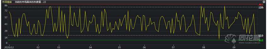 根據(jù)同花順(300033)遠(yuǎn)航版數(shù)據(jù)顯示,今日市場熱度值為22,較上一交易日大幅下降?;す蛇B續(xù)下挫的虧錢效應(yīng)開始傳遞到其他方向,市場情緒進(jìn)入冰點(diǎn)。化工股連續(xù)大跌兩日后,預(yù)期下周將有企穩(wěn),不過由于節(jié)前資金觀望情緒較濃,因此預(yù)期情緒會在冰點(diǎn)區(qū)震蕩,市場以混沌結(jié)構(gòu)為主。