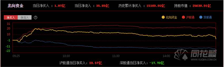 4、滬股通凈買入19.57億元,深股通早盤凈賣出17.70億元。
