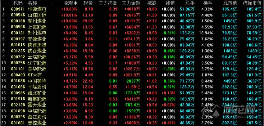 10月11日,受煤價(jià)不斷超預(yù)期消息影響,A股煤炭開采概念拉升回暖,截至收盤,恒源煤電(600971)、山煤國際(600546)、兗州煤業(yè)(600188)、上海能源(600508)漲停。鄭州煤電(600121)、安源煤業(yè)(600397)、陜西黑貓(601015)、陜西煤業(yè)(601225)等股拉升上漲。