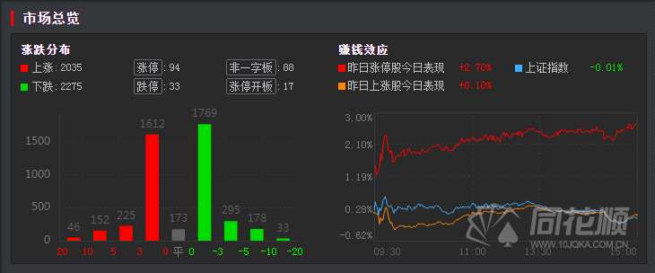 3、兩市共2035個(gè)股上漲,2275只個(gè)股下跌;漲停94家,跌停33家。