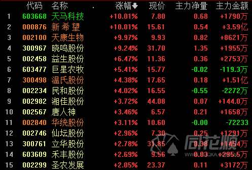 養(yǎng)殖板塊近期自底部不斷走強,自9月初低點以來,該板塊已累計漲近30%,新希望、天馬科技(603668)漲停,曉鳴股份(300967)、天康生物等跟隨上漲。