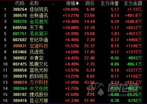 早盤元宇宙概念股再度走強,天下秀反包漲停,佳創(chuàng)視訊(300264)20CM封板,中青寶(300052)、會暢通訊(300578)、昆侖萬維(300418)等跟隨上漲。