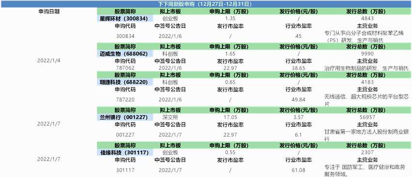 近期(12月21日至1月7日)IPO動(dòng)態(tài)如下: