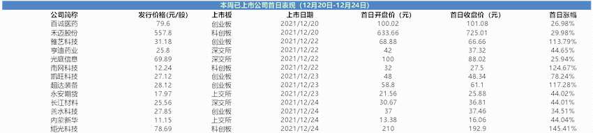 截至截稿時(shí)間12月24日,信息披露顯示,下周有1家公司將上市,為統(tǒng)聯(lián)精密。