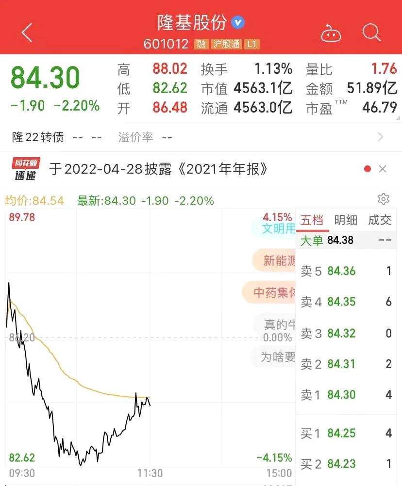 光伏龍頭隆基股份(601012)盤中一度跌逾4%,上午收跌逾2%。