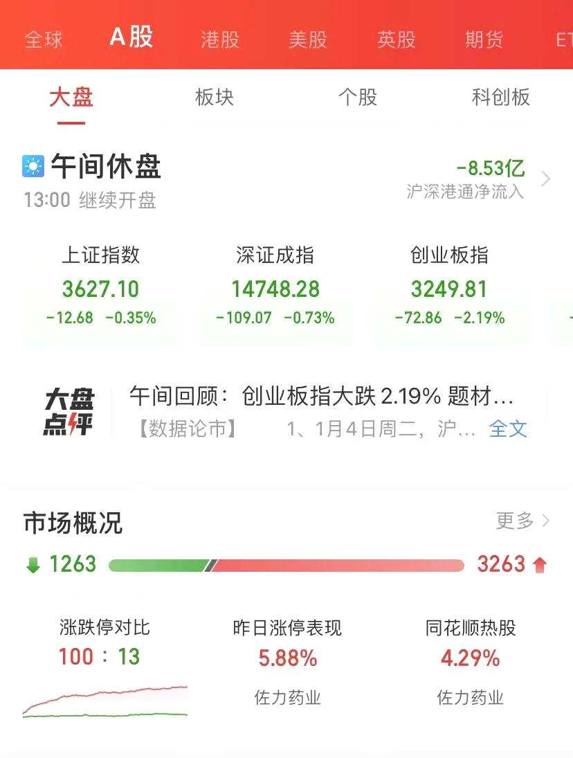 今天上午主要指數(shù)全線下挫,然而個股卻是3200多只上漲,反映出權(quán)重股、機構(gòu)重倉股、熱門賽道科技等股票明顯跌幅超過大盤。并且還是有100只個股漲停