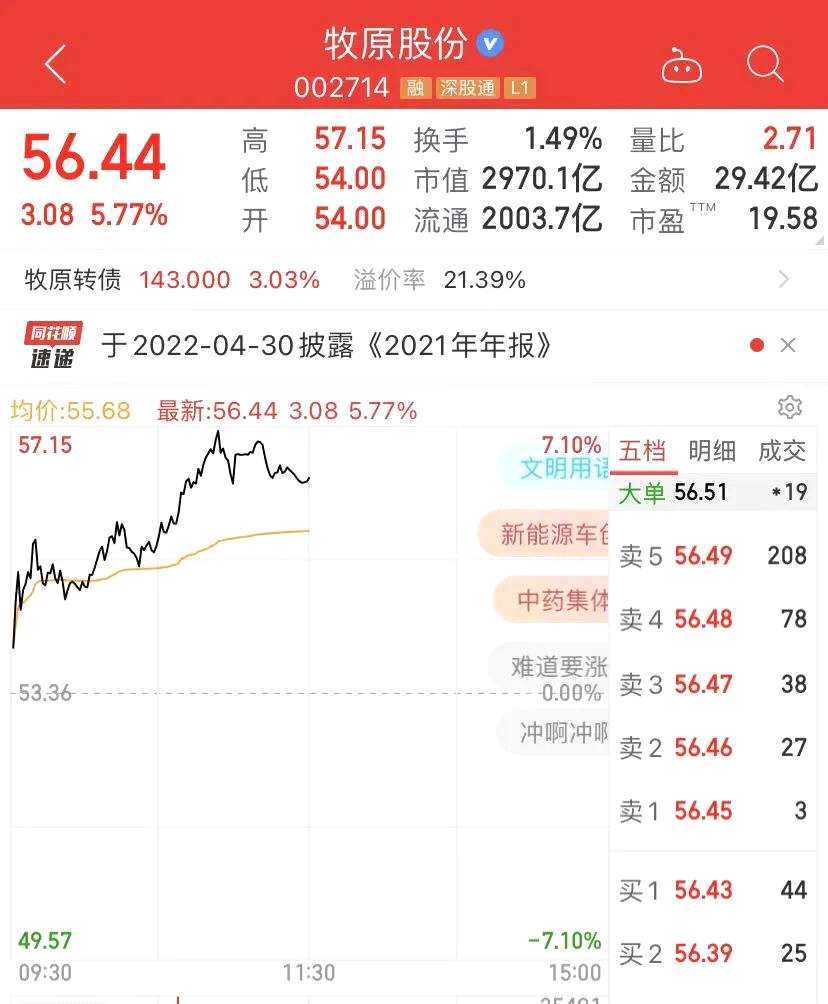 3000億市值的豬茅牧原也大漲5.77%。