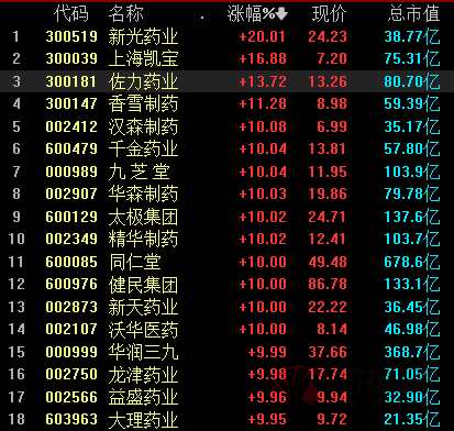 2022年首個(gè)交易日,中藥指數(shù)盤(pán)中暴漲超過(guò)4%,指數(shù)創(chuàng)出最近3年多新高。新光藥業(yè)(300519)“20厘米”漲停,佐力藥業(yè)(300181)、上海凱寶(300039)、香雪制藥(300147)漲超10%,漢森制藥(002412)、千金藥業(yè)(600479)、九芝堂(000989)、華森制藥(002907)等多股漲停。