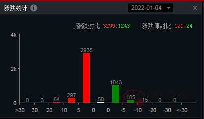 3、兩市共3299只個(gè)股上漲,1243只個(gè)股下跌;漲停121家,跌停24家;