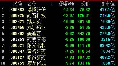 與題材股走勢(shì)截然相反,賽道股今日集體熄火,CRO概念方面,3000億市值的藥明康德(603259)跌超8%,凱萊英(002821)跌停,藥石科技(300725)跌超12%,此外,醫(yī)療器械龍頭邁瑞醫(yī)療(300760)也暴跌超過(guò)10%。