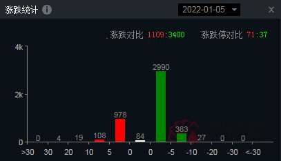 3、兩市共1109只個股上漲,3400只個股下跌;漲停71家,跌停37家;
