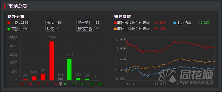 3、兩市共2966只個(gè)股上漲,1480只個(gè)股下跌;漲停98家,跌停9家;