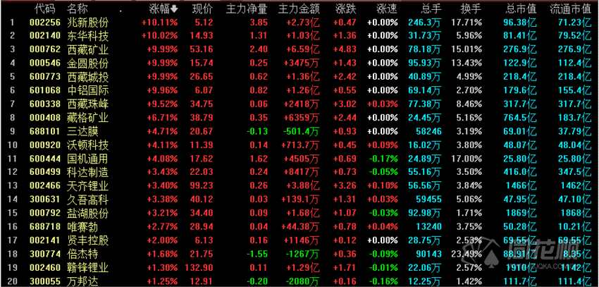 鹽湖提鋰概念在經(jīng)歷兩日的大幅調(diào)整后今日反彈,開(kāi)盤后鹽湖提鋰概念小幅震蕩后持續(xù)走高,截至收盤板塊漲幅達(dá)到4.45%,板塊中兆新股份(002256)、東華科技(002140)、西藏礦業(yè)(000762)、金圓股份(000546)、【西藏城投(600773)、股吧】(600773)、中鋁國(guó)際(601068)漲停。另外截至發(fā)稿,港股中鋁國(guó)際漲幅達(dá)到33%。
