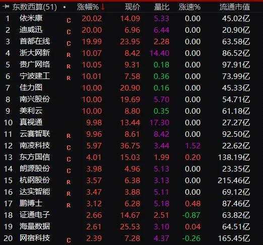 超級工程“東數(shù)西算”概念繼續(xù)發(fā)酵,從上周五暴漲,周一暴漲,今天上午即使市場整體走弱,但這個超級板塊繼續(xù)活躍,依米康(300249)、迪威訊、首都在線(300846)繼續(xù)20cm漲停,浙大網(wǎng)新(600797)、貴廣網(wǎng)絡(600996)等大量個股繼續(xù)漲停。