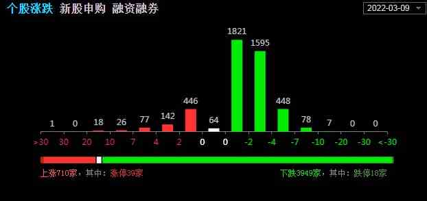 3、兩市共710漲,3949跌;漲停39家,跌停18家;