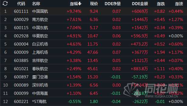 3月17日機(jī)場(chǎng)航運(yùn)概念漲幅居前,截至發(fā)稿板塊漲幅接近4%,板塊中中國(guó)國(guó)航(601111)、南方航空(600029)、中國(guó)東航(600115)、【華夏航空(002928)、股吧】(002928)漲幅居前。