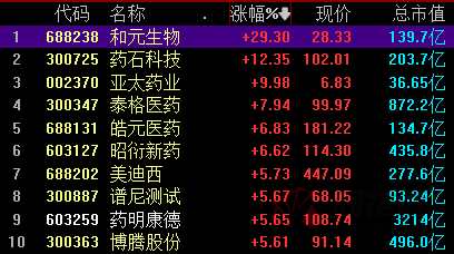 3月23日,醫(yī)藥相關板塊大漲,CRO、中藥、醫(yī)療服務等概念漲幅居前,其中CRO板塊漲幅位列兩市第一,和元生物大漲近30%、藥石科技(300725)漲12%、【亞太藥業(yè)(002370)、股吧】(002370)、泰格醫(yī)藥(300347)、皓元醫(yī)藥等漲幅居前。