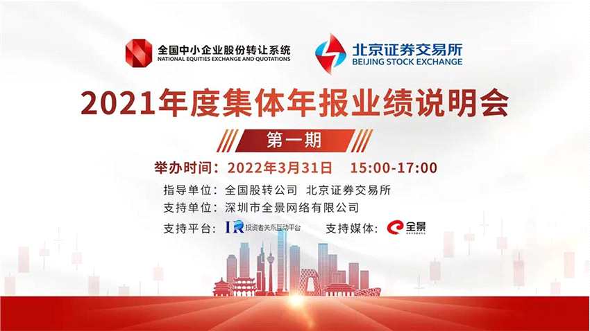 北交所首場業(yè)績說明會即將于3月31日開啟,舉辦機構(gòu)花落全景網(wǎng)。
