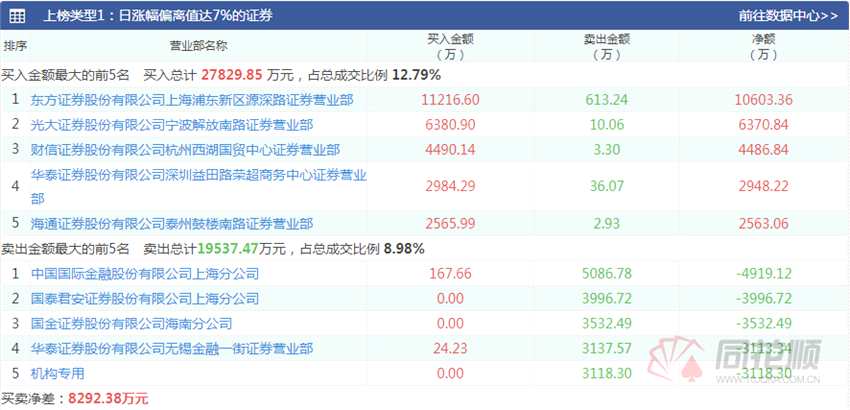南山控股,龍虎榜數(shù)據(jù)顯示,東方證券上海浦東新區(qū)買入1.12億元,光大證券寧波解放南路買入6381萬元,財信證券杭州西湖國貿(mào)中心買入4490萬元。