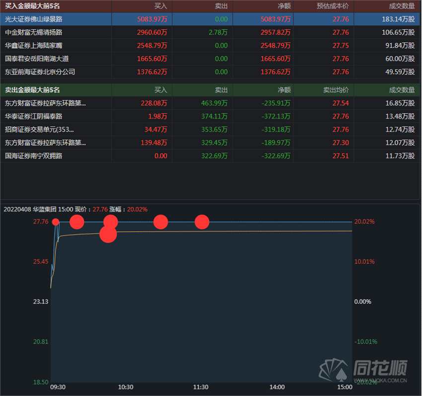 華藍集團,龍虎榜數(shù)據(jù)顯示,光大證券佛山綠景路5084萬元主封,成本集中于漲停板附近,中金財富無錫清揚路買入2961萬元,華鑫證券上海陸家嘴買入2549萬元。