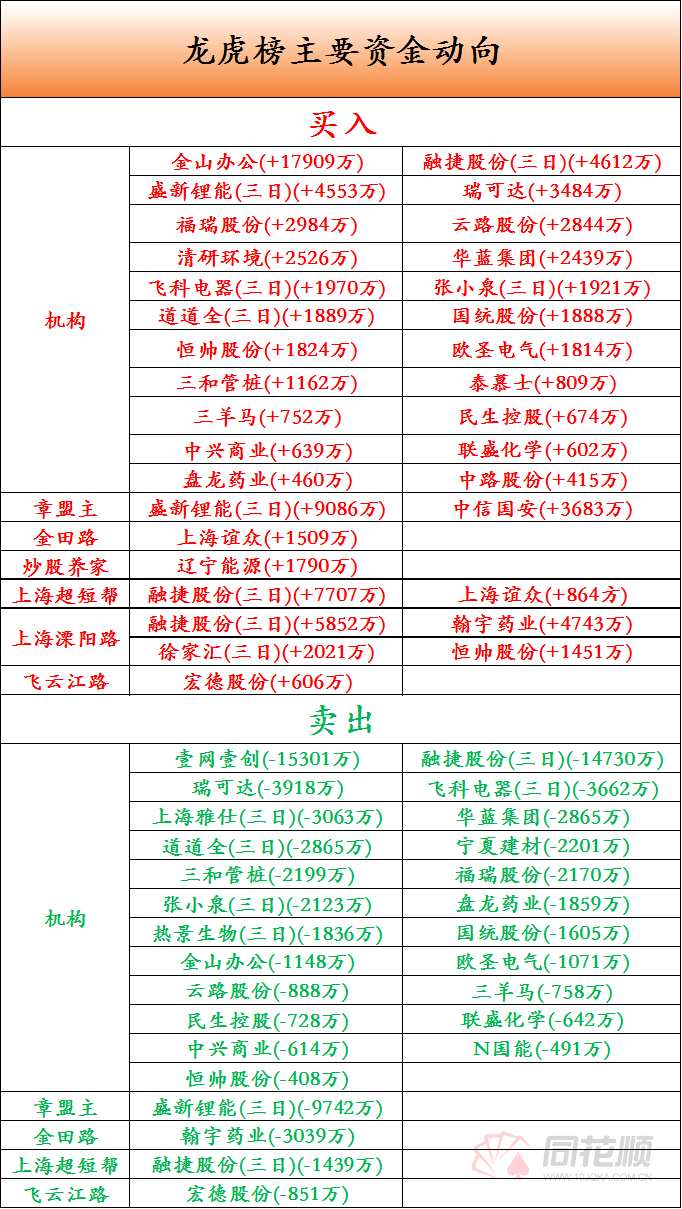 透視龍虎榜:機(jī)構(gòu)集體買入金山辦公 融捷股份受游資追捧