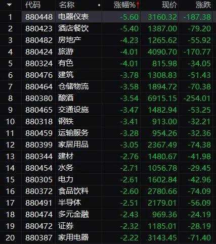 地產(chǎn)、旅游、有色、建筑、白酒等板塊跌幅領(lǐng)先。