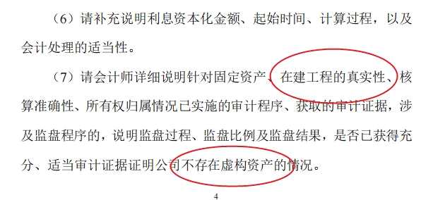 深交所要求會(huì)計(jì)師詳細(xì)說(shuō)明針對(duì)固定資產(chǎn)、在建工程的真實(shí)性、核算準(zhǔn)確性、所有權(quán)歸屬情況已實(shí)施的審計(jì)程序、獲取的審計(jì)證據(jù),涉及監(jiān)盤(pán)程序的,說(shuō)明監(jiān)盤(pán)過(guò)程、監(jiān)盤(pán)比例及監(jiān)盤(pán)結(jié)果,是否已獲得充分、適當(dāng)審計(jì)證據(jù)證明公司不存在虛構(gòu)資產(chǎn)的情況。