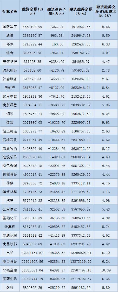 表:9月9日申萬一級行業(yè)兩融交易情況: