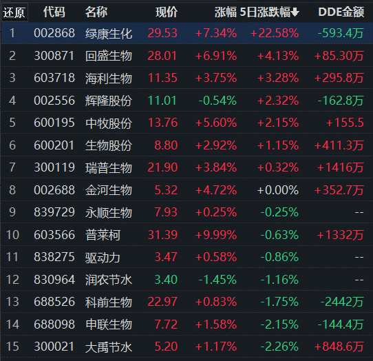 從漲幅居首的農(nóng)業(yè)服務(wù)行業(yè)看,截至9月13日11:30,行業(yè)交易中的15只個股有13只上漲,其中4只漲幅超5%。從資金流向看,該行業(yè)今天上午大單資金凈流入額達1398.89萬元,居行業(yè)第33位。