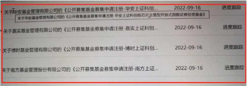 罕見(jiàn)!證監(jiān)會(huì)9月16日半夜同步掛出4只由4家大型基金公司提交的科創(chuàng)板新興產(chǎn)業(yè)ETF審批進(jìn)展。