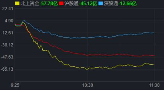 從資金面來看,11月28日上午,北上資金凈賣出金額達(dá)57.78億元。