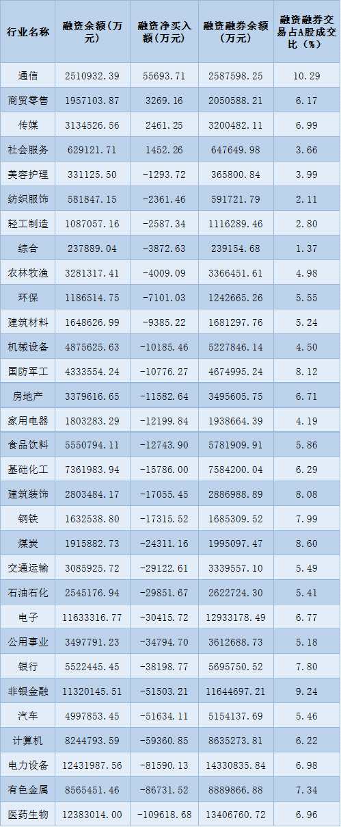 表:11月25日申萬一級(jí)行業(yè)兩融交易情況: