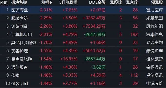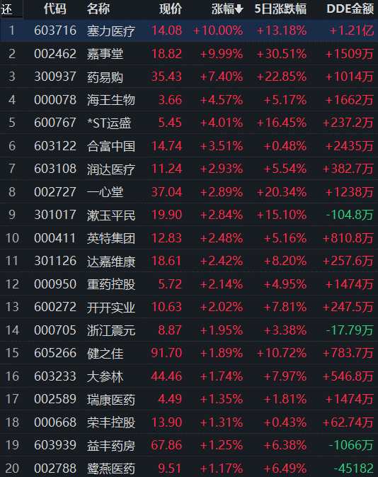 早盤醫(yī)藥商業(yè)紅火漲2.31% 機(jī)構(gòu):低位題材或迎輪動(dòng)補(bǔ)漲機(jī)會(huì)