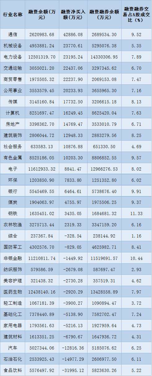 表:12月1日申萬一級(jí)行業(yè)兩融交易情況: