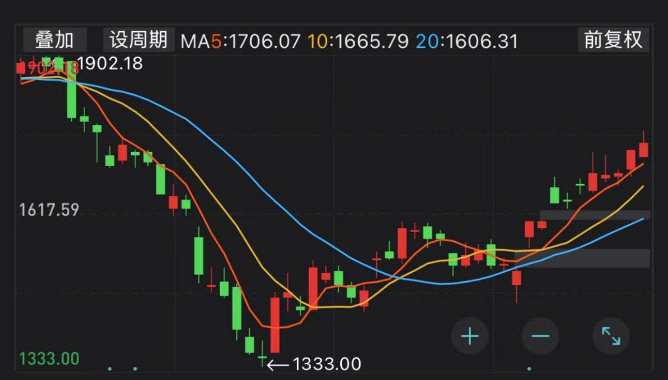 這是貴州茅臺(tái)(600519)近期的日線圖,今天上午,貴州茅臺(tái)上漲0.66%,盤中漲近2%,最新市值為21874億元。