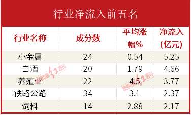 今日機(jī)構(gòu)資金流入小金屬概念5.25億元,白酒概念4.66億元,流入養(yǎng)殖業(yè)板塊3.77億元,流入鐵路公路板塊2.38億元,流入飼料板塊2.17億元。流入最多的板塊僅有5億元左右,說明機(jī)構(gòu)資金的謹(jǐn)慎態(tài)度,未敢全面進(jìn)場(chǎng),只以單打少數(shù)個(gè)股為主。