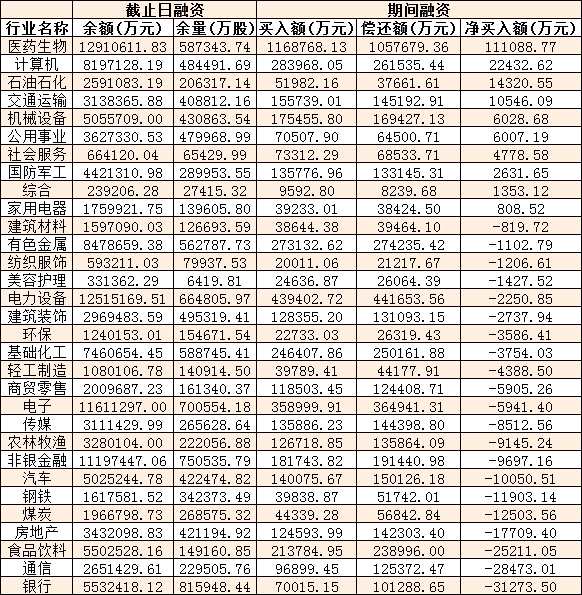 表:12月13日申萬一級(jí)行業(yè)兩融交易情況: