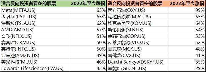 花旗認(rèn)為,2023年適合反向投資者看多和看空的股票分別包括: