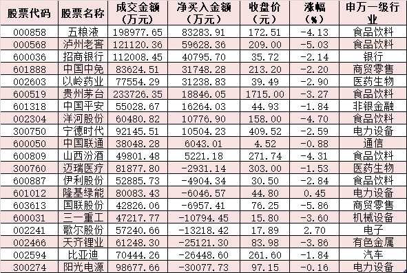 表:12月20日滬、深股通前十大成交活躍股交易情況