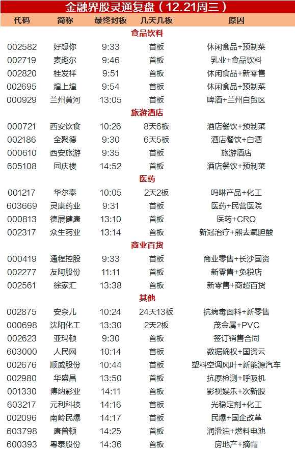 驅(qū)動因素:與食品飲料板塊有著一樣的邏輯。另外,全聚德有著銷售定制白酒的消息刺激,西安飲食(000721)也有西鳳酒借殼的猜想在。