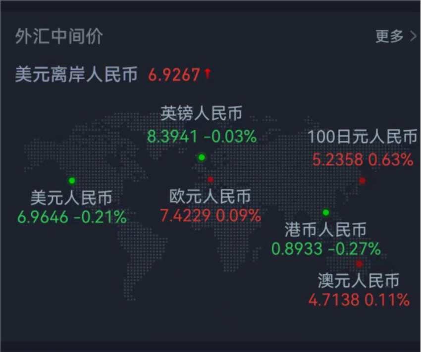 周五在岸人民幣兌美元夜盤23:30收?qǐng)?bào)6.9000。人民幣兌美元中間價(jià)報(bào)6.9646,調(diào)升147個(gè)基點(diǎn),本周累計(jì)調(diào)升164個(gè)基點(diǎn),全年累計(jì)調(diào)貶5889個(gè)基點(diǎn)。交易員稱,市場(chǎng)對(duì)疫情還是有擔(dān)憂的,短期情緒受抑制。
