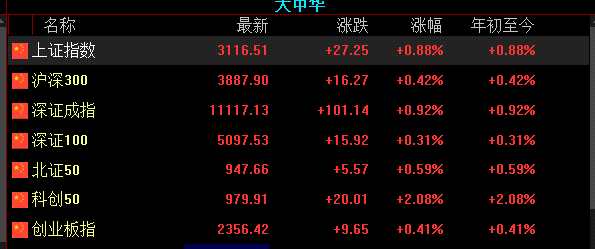 超百股漲停、逾4200只個股飄紅!A股喜迎開門紅,滬指收復(fù)3100點